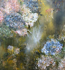 A romantic yet refined contemporary floral painting that captures the essence of modern cottagecore luxury, this oil on canvas artwork evokes the hand-touched beauty and layered depth often associated with encaustic art. Soft ivory garden blooms drift through mossy greens, weathered neutrals, and poetic texture—recalling heirloom botanicals, sun-washed cottages, and European countryside elegance, reimagined for today’s luxury interiors.